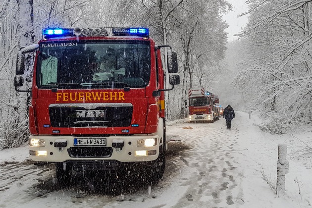 Am Abend des 8. Dezember setzte starker Schneefall im Bergischen Land ein - mit den folgen war die Heiligenhauser Feuerwehr am folgenden Samstag, den 9. Dezember fast den ganzen Tag beschäftigt. Gegen 07:40 Uhr rückten die Frauen und Männer zum ersten Mal aus. Auf der Langenbügeler Straße lag am Ortsausgang Isenbügel ein ca. 4 Meter langer Baum auf Gehweg und Straße. Mit der Kettensäge wurde der Baum zerkleinert und an den Rand gelegt.