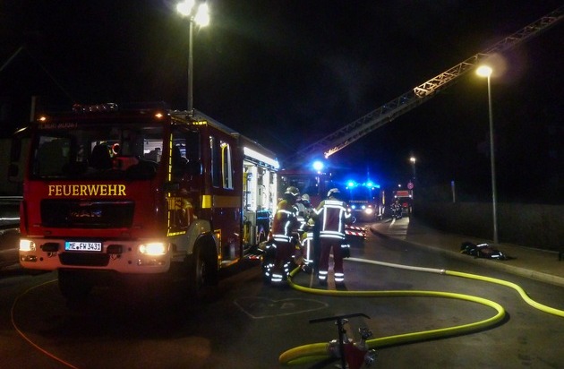 Der Einsatz endete für die rund 40 Einsatzkräfte gegen 02:45 Uhr nach der Bestückung der Einsatzfahrzeuge an der Feuer- und Rettungswache.