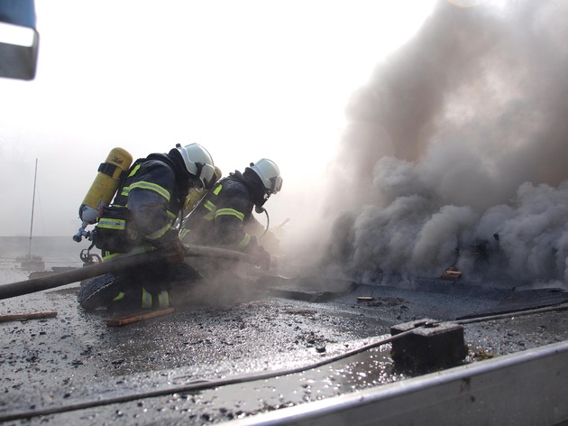 Durch die Feuerwehr wurden zwei Arbeiter unverletzt vom Dach gerettet. Trotz des Einsatzes mehrerer C Rohre unter Atemschutz konnte eine Brandausbreitung nicht verhindert werden. Bereits während der ersten Löschmaßnahmen kam es zu einem Teileinsturz des Daches. Wegen der starken Rauchentwicklung wurden die Anwohner aufgefordert Fenster und Türen geschlossen zu halten. Um an einige Brandnester zu gelangen musste letztendlich ein Bagger eingesetzt werden. Das Gebäude konnte nicht gerettet werden.