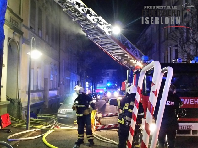 In der vergangenen Nacht um 23:20 Uhr wurde die Feuerwehr Iserlohn zu einem Brand in einem Mehrfamilienhaus in die Karlstraße gerufen. Beim Eintreffen der ersten Kräfte war bereits eine starke Rauchentwicklung aus dem Hauseingang erkennbar. Auf einigen Balkonen im 1. und 2. Obergeschoß befanden sich Personen, die ihre Wohnung nicht über den Treppenraum verlassen konnten.