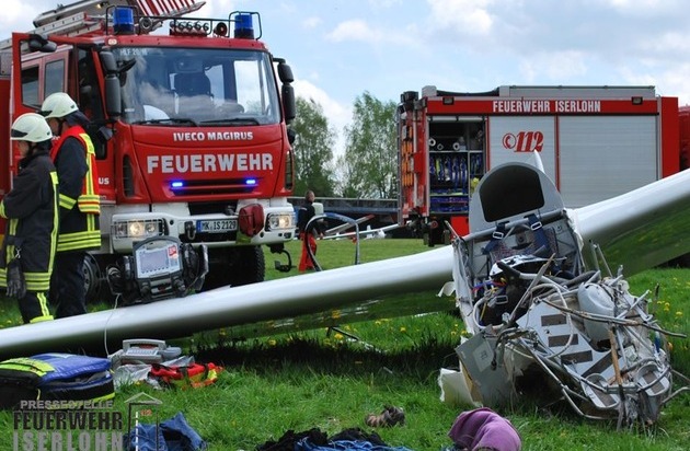 Zwei Schwerverletzte forderte heute Mittag um 13:06 Uhr der Absturz eines Segelflugzeugs in Iserlohn Sümmern. Hierbei wurden zwei ca. 20 und 40 jährige männliche Personen in dem Segelfugzeug eingeklemmt.
