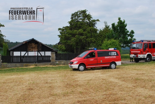 Gegen 15 Uhr wurde die Feuerwehr Iserlohn zu einem Scheunenbrand im Bereich Reingser Weg / Gut Böckelühr gerufen. Hierzu rückten der Löschzug der Berufsfeuerwehr und die Freiwillige Feuerwehr mit den Löschgruppen Leckingsen und Sümmern aus. An der Einsatzstelle brannte es in einem landwirtschaftlichen Nebengebäude. Zur Brandbekämpfung wurde ein Trupp unter Atemschutz mit einem C-Rohr eingesetzt. Der Trupp brachte das Feuer schnell unter Kontrolle. Der im Dach befindliche Heuboden blieb unversehrt. Nach rund einer Stunde war der Einsatz der Feuerwehr beendet.