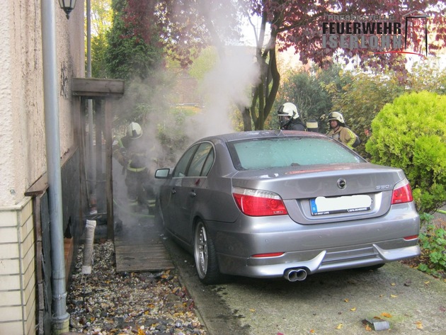 Heute Morgen um 09:47 Uhr meldeten mehrere Anrufer einen PKW-Brand an der Straße "An der langen Hecke". Bei Eintreffen der Berufsfeuerwehr brannte ein am Gebäude stehendes Fahrzeug im Motorraum in voller Ausdehnung. Der Brand drohte zunächst auf das Wohngebäude überzugreifen. Mit einem C-Rohr konnten die Einsatzkräfte eine Brandausdehnung verhindern und den Brand am Fahrzeug löschen. Im Einsatz waren das Hilfeleistungslöschfahrzeug und das Tanklöschfahrzeug der Berufsfeuerwehr. Zur Brandursachenermittlung wurde die Einsatzstelle der Polizei übergeben.