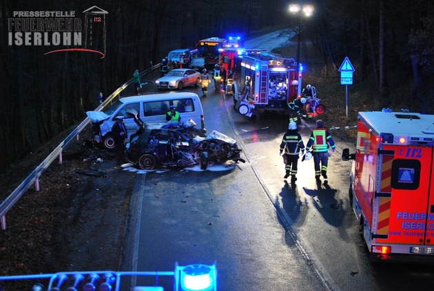 Auf der Dortmunder Straße ereignete sich heute Nachmittag ein schwerer Verkehrsunfall bei dem vier Personen, darunter ein Kind, schwer verletzt wurden. Gegen 15:30 Uhr kollidierten ein PKW und Kleinbus zwischen Gerlingsen und dem Kreisverkehr am Roten Haus.