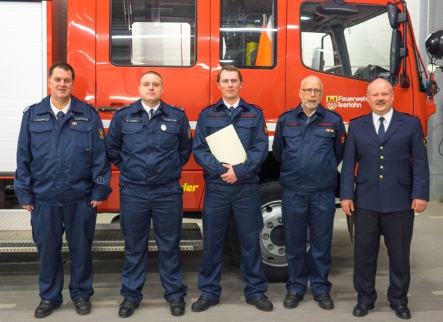 Durch den Leiter der Feuerwehr, Oberbrandrat Christian Eichhorn wurde Mike Cliffe zum Brandmeister befördert.