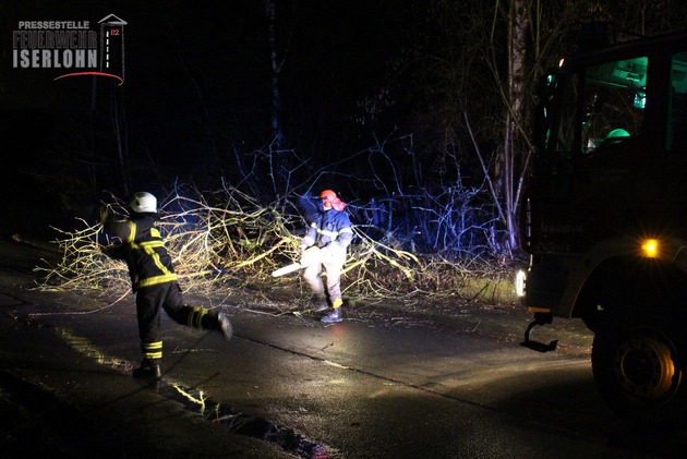 So kam es den Kollegen vor, als heute Morgen (dritter Morgen in Folge) wieder das Hilfeleistungslöschfahrzeug der Berufsfeuerwehr zu einem umgestürzten Baum gerufen wurde. Um 06:30 Uhr rückten die Beamten zur Straße "Hengert" aus. Hier war ein Baum umgestürzt und versperrte einen Großteil der Fahrbahn. Mit einer Motorkettensäge wurde die Verkehrsgefährdung beseitigt.