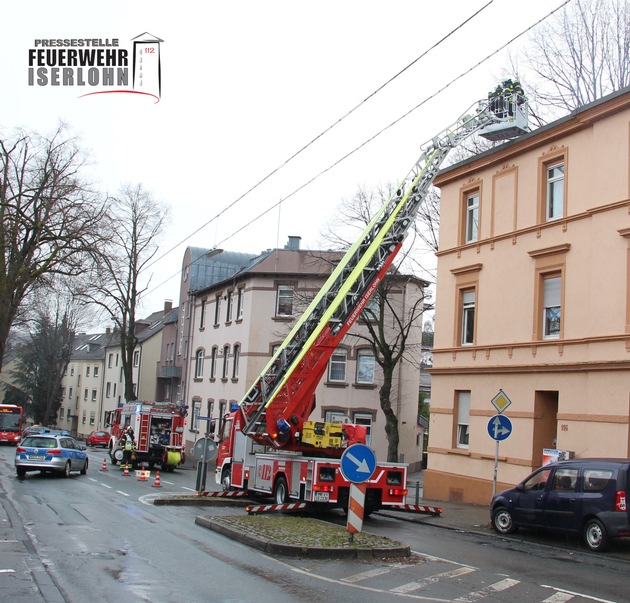 Um 11:21 Uhr rückte der Löschzug der Berufsfeuerwehr zur Mendener Straße aus. Passanten alarmierten die Feuerwehr. Sie vermuteten einen Kaminbrand, weil dichter Rauch vom Dach eines Hauses über die Mendener Straße zog. Die Einsatzkräfte kontrollierten den Kamin auf dem Dach und die betreffende Wohnung. Vermutlich kam es beim Anzünden des Kamins zu der ungewöhnlich starken Rauchentwicklung. Kein Einsatz für die Feuerwehr.