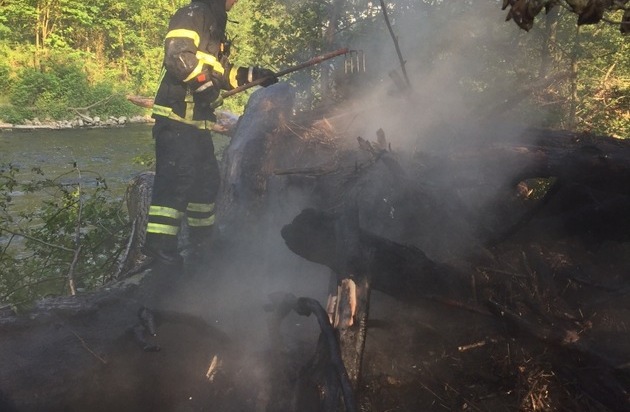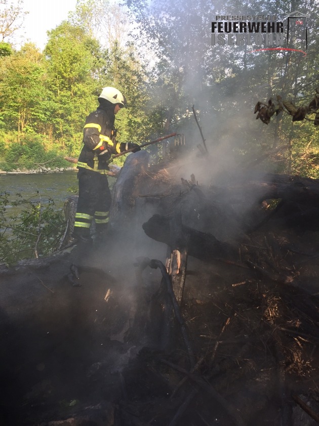 Um 7:22 Uhr musste die Feuerwehr mit dem Hilfeleistungslöschfahrzeug (HLF) zu einem Brandeinsatz am Lenneufer, im Bereich An Pater und Nonne, ausrücken. Am Bike Park, unweit der ehemaligen Kleinbahnbrücke, waren Baumstämme, Büsche und Reisig in Brand geraten und brannten in voller Ausdehnung. Durch die Einsatzkräfte wurde ein C-Rohr zur Brandbekämpfung eingesetzt. Da in diesem Bereich kein Hydrantennetz vorhanden ist, musste das Tanklöschfahrzeug (TLF) nachalarmiert werden. Über den 4000 Liter fassenden Löschwassertank des TLF wurde die Einsatzstelle mit Löschwasser versorgt. Nach rund eineinhalb Stunden war der Einsatz beendet. Eingesetzt waren sechs Einsatzkräfte der Berufsfeuerwehr. Warum es zu dem Feuer kam ist unklar.