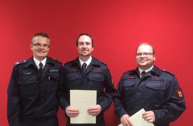 Der bisherige Löschgruppenführer, Oberbrandmeister Bastian Schmidt hat aus privaten Gründen das Amt niederlegen. Bastian Schmidt wurde von Brandoberinspektor Klaus Knust, Sachbearbeiter der Freiwilligen Feuerwehr, von seiner Funktion entpflichtet. Knust fand überaus lobende Worte und dankte Schmidt für die geleistete Arbeit. Zum neuen Löschgruppenführer wurde Oberbrandmeister Stefan Pahl bestellt.