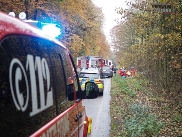Um 13:40 Uhr kam es zu einem Verkehrsunfall auf der Schälkstraße, in Höhe der Straße Im Kump. Ein Fahrzeug war von der Fahrbahn abgekommen und in den angrenzenden Wald geschleudert. Hierbei wurde die Fahrerin schwer verletzt. Bei Eintreffen der Einsatzkräfte lag die Fahrerin neben dem Fahrzeug und wurde durch Ersthelfer versorgt. Aufgrund der Schwere der Verletzung wurde die Patientin mit dem Rettungswagen, in Begleitung des Notarztes, in ein Dortmunder Krankenhaus transportiert.Im Einsatz vor Ort waren der Rüstzug und der Rettungsdienst der Berufsfeuerwehr sowie die Löschgruppe Letmathe der Freiwilligen Feuerwehr.