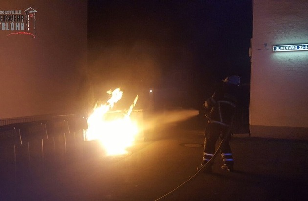 Relativ ruhig verlief der Dienst für den Brandschutz an Silvester. Zu 8 Einsätzen rückten die Einsatzkräfte aus. Um 14:30 Uhr wurde das Hilfeleistungslöschfahrzeug der Berufsfeuerwehr zu einer Tierrettung alarmiert. Eine Katze saß in etwa 5 Meter Höhe in einer Konifere fest. Eine Kollegin stieg über eine Steckleiter auf und brachte die dankbare Katze wieder auf den Boden. Um 15:41 Uhr meldeten mehrere Anrufer über den Notruf einen Brand an der Schule der Schulstraße. In einem Kellerabgang brannten altes Blätterwerk und Zeitungen. Das Feuer hatte bereits auf die Holztür zu einer Toilettenanlage übergegriffen. Mit einem C-Rohr unter Atemschutz wurde das Feuer schnell gelöscht. Der Löschzug der Berufsfeuerwehr wurde durch die Löschgruppe Stadtmitte der Freiwilligen Feuerwehr unterstützt. Schadenshöhe und Brandursache werden durch die Polizei ermittelt. Personen kamen nicht zu Schaden. Weiter ging es nach dem Jahreswechsel. An der Wiesenstraße, an der Berliner Allee, an der Baarstraße und an der Nußbergstraße wurden brennende Altpapiercontainer gemeldet. Das brennende Altpapier in den Containern wurde jeweils mit einem C-Rohr abgelöscht. Unterstützung kam hier von den Löschgruppen Bremke und Iserlohner Heide der Freiwilligen Feuerwehr. An der Grabenstraße brannte zudem ein 1000 Liter Wertstoffmüllbehälter aus Kunststoff. Da das Feuer auf das Buschwerk überzugreifen drohte, setzten die zuerst eintreffenden Polizeibeamten als Erstmaßnahme einen Pulverlöscher zur Brandbekämpfung ein. Mit einem C-Rohr wurden die Glutnester abgelöscht. Brennende Hausmüllbehälter aus Kunststoff mussten auch am Ulmenweg mit einem C-Rohr abgelöscht werden. Zum Jahreswechsel verstärkte die Löschgruppe Stadtmitte mit dem Tanklöschfahrzeug die Brandsicherheitswache am Parktheater für das Abbrennen des Höhenfeuerwerks am Parktheater.