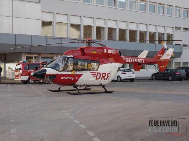 Am frühen Nachmittag um 15:00 Uhr rückte der Iserlohner Rettungsdienst zu einem internistischen Notfall zur Gennaer Straße aus. Auf Grund der schwere der Erkrankung und den örtlichen Gegebenheiten, waren umfangreiche Maßnahmen wie die Alarmierung eines Rettungshubschraubers und des kompletten Löschzuges der Berufsfeuerwehr Iserlohn erforderlich. An der Einsatzstelle waren zugleich Tragehilfe, Patientengerechte Rettung über die Drehleiter und eine Landeplatzsicherung nötig. Der Treppenraum ließ keinen Transport über das innere des Hauses zu und es konnte eine Patientengerechte Rettung mittels Drehleiter vorgenommen werden. An der aufwendigen Rettung waren insgesamt 21 Einsatzkräfte beteiligt und dauerte 90 Minuten an. Der Patient ist in eine Dortmunder Spezialklinik geflogen worden.