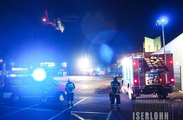 Am Sonntagabend um 20:24 Uhr wurde die Einsatzzentrale über einen vermutlichen Fenstersturz in der Straße Am Steinhügel informiert. Bei Eintreffen des Rettungsdienstes bestätigte sich zunächst, das ein 29-jähriger aus dem 4. Obergeschoss eines Hochhauses gestürzt war. Der Patient war so schwer verletzt, dass ein nachtflugtauglicher Rettungshubschrauber alarmiert wurde. Ein naheliegender Parkplatz eines Baumarktes wurde als Landeplatz genutzt. Der Einsatzleitwagen, das Hilfeleistungslöschgruppenfahrzeug und Tanklöschfahrzeug der Berufsfeuerwehr Iserlohn, leuchteten den Landeplatz aus. Der Schwerstverletzte konnte nach notärztlicher Versorgung stabilisiert und anschließend in ein Bochumer Krankenhaus geflogen werden. Die Polizei hat die Ermittlungen aufgenommen. Der Einsatz dauerte ca. 90 Minuten und es waren 15 Einsatzkräfte des Rettungsdienstes und der Feuerwehr vor Ort.