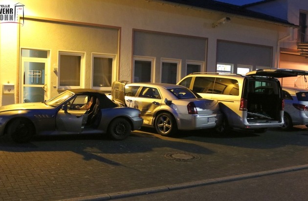 Zu einem heftigen Verkehrsunfall mit hohem Sachschaden, aber ohne verletzte Personen, wurde die Feuerwehr am Abend gegen 18:44 Uhr gerufen. Ein BMW stieß an einer Kreuzung an der Corunna Straße mit einem Lieferwagen zusammen. Der BMW schleuderte die Straße weiter und schob noch zwei weitere Fahrzeuge zusammen. Aus dem Lieferwagen liefen größere Mengen Betriebsmittel aus, die durch die Feuerwehr abgestreut und zur Entsorgung aufgenommen wurden.