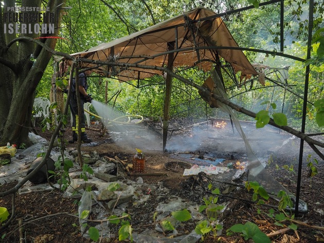Am Freitag, um 18:08 Uhr, bemerkten aufmerksame Bürger eine Rauchentwicklung im Bereich der Straße Diepke. Nahe am Ufer, unterhalb der Brücke der Straße Diepke, hatte ein im Grünen hergerichteter Schlaf-& Lagerplatz gebrannt. Mittels eines C-Rohres wurden kleinere Glutnester abgelöscht. Die Polizei hat die Ermittlungen aufgenommen. Nur Augenblicke später, um 18:47 Uhr rückte ein Teil des Löschzuges zur Hubschrauberlandung in die Schulstraße ab. Dort landete der Rettungshubschrauber Christoph 8 aus Lünen, der zu einem internistischen Notfall nachalarmiert worden war. Ein Transport per Luftweg war nach notärztlicher Versorgung indes nicht erforderlich und der Patient wurde bodengebunden in ein Iserlohner Krankenhaus transportiert. Bei beiden Einsätzen waren jeweils 10 Einsatzkräfte der Feuerwehr Iserlohn im Einsatz.