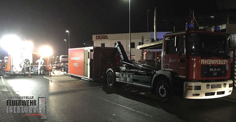 Bei dem am gestrigen Abend (15.09.2017) gegen 21:00 Uhr ausgebrochenen Großbrand bei der Firma Dura in Plettenberg wurde durch die Kreisleitstelle auch Unterstützung von der Berufsfeuerwehr Iserlohn angefordert. Wegen des großen Einsatzes von Atemschutzgeräten an der Einsatzstelle, rückte um 23:00 Uhr ein Wechselladerfahrzeug mit dem Abrollbehälter Atemschutz (AB-A) der Berufsfeuerwehr Iserlohn nach Plettenberg aus. Auf dem AB-A befindet sich eine große Anzahl an Atemschutzgeräten, die bei Bedarf der Einsatzstelle zugeführt werden kann. In diesem Fall als "Überörtliche Hilfe" nach Plettenberg. Die Feuerwehren aller Städte und Gemeinden unterstützen sich bei größeren Schadenslagen mit Gerätschaften und/oder Personal. Für die Besatzung der Iserlohner Berufsfeuerwehr war der Einsatz um 03:00 Uhr beendet.