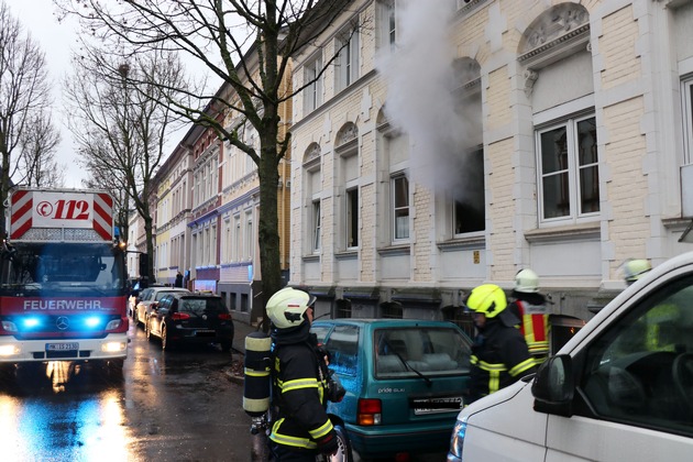 Um 15:42 Uhr wurde der Feuerwehr Iserlohn eine starke Rauchentwicklung aus einem Mehrfamilienhaus an der Weststraße gemeldet. Bei Eintreffen des Löschzugs der Berufsfeuerwehr konnte eine starke Rauchentwicklung aus dem Hauseingang und aus einem Fenster der betreffenden Erdgeschosswohnung des Gebäudes festgestellt werden. Eine Frau hatte sich bereits mit einem Sprung aus einem Fenster der Erdgeschosswohnung in Sicherheit gebracht. Hierbei verletzte sie sich leicht und wurde durch den Rettungsdienst in ein Krankenhaus transportiert. Die Brandbekämpfung in der Küche der Wohnung übernahm ein Trupp unter Atemschutz mit einem C-Rohr. Weitere Trupps kontrollierten die anderen Wohnungen im Obergeschoss. Zur Entrauchung wurde ein Überdrucklüfter eingesetzt. Zur Brandursachenermittlung wurde die Einsatzstelle der Polizei übergeben. Nach rund einer Stunde war der Einsatz für den Löschzug der Berufsfeuerwehr, dem Rettungsdienst und den Löschgruppen Stadtmitte und Obergrüne der Freiwilligen Feuerwehr beendet.