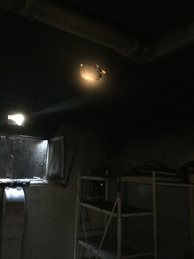 Ein zweiter Trupp unter Atemschutz kontrollierte den zum Teil stark verrauchten Keller und sorgte für Abluftöffnungen um den Keller mittels Hochleistungslüftern zu entrauchen.