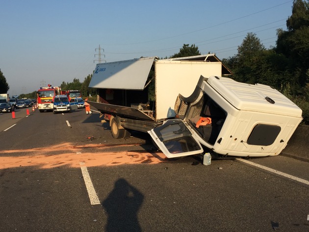 Ein mit 2400 Kilogramm Sprengstoff beladener Lkw ist heute Morgen auf der Autobahn 46 verunglückt. Das Fahrzeug war in Fahrtrichtung Wuppertal gegen die Beton-Leitplanke geprallt und verlor nahezu vollständig die Ladung.
