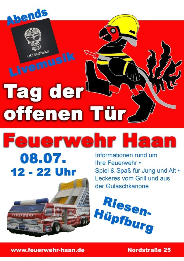 FW-HAAN: Tag der offenen Tür bei der Feuerwehr Haan am 8. Juli