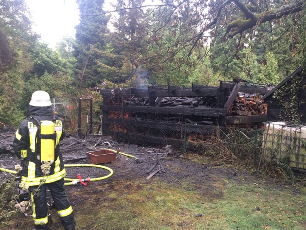 An der Sedanstraße ist heute ein Gartenhaus vollständig abgebrannt. Zwei weitere Gartenhäuser wurden durch die Flammen ebenfalls beschädigt, darüber hinaus griff das Feuer auf einen größeren Holzstapel über.