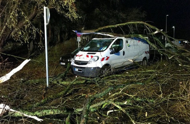 Ebenfalls mehrere Bäume waren am Schallbruch betroffen. Hier wurden geparkte Fahrzeuge beschädigt.