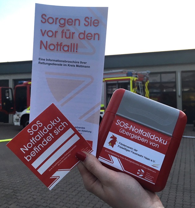 Der Arbeitskreis Rettungsdienst des Kreisfeuerwehrverbandes Mettmann hat daher im Einvernehmen mit dem Kreis Mettmann als Träger des Rettungsdienstes die Notfallbox sowie einen einheitlichen Info-Flyer entwickelt. Der Förderverein der Freiwilligen Feuerwehr Haan setzt das Projekt nun im Stadtgebiet Haan um.