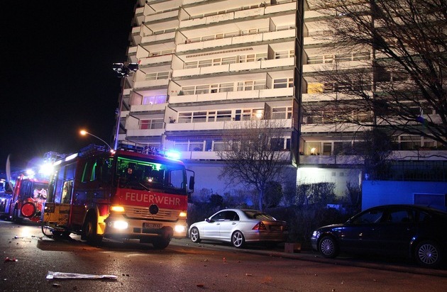 FW-GL: Unruhiger Jahreswechsel für die Feuerwehr Bergisch Gladbach Balkonbrand eines Hochhauses fordert 3 Verletzte - Einsatzkräfte werden mit Raketen und Böllern an ihrer Arbeit gehindert