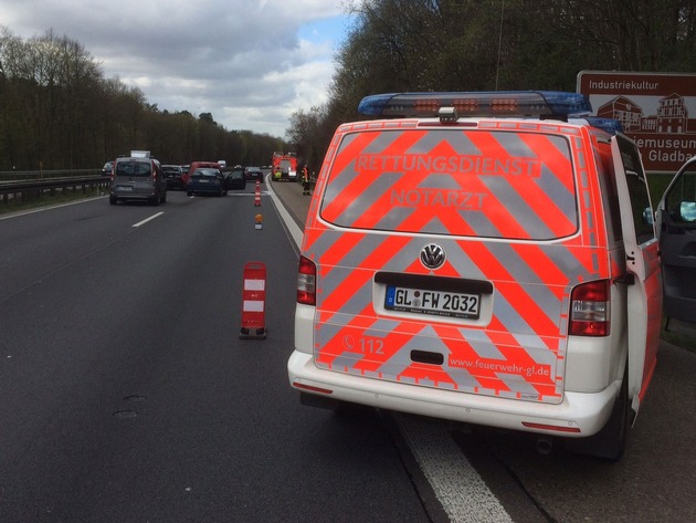 FW-GL: Schwerer Verkehrsunfall mit 7 Verletzten auf der BAB 4 in Fahrtrichtung Köln
