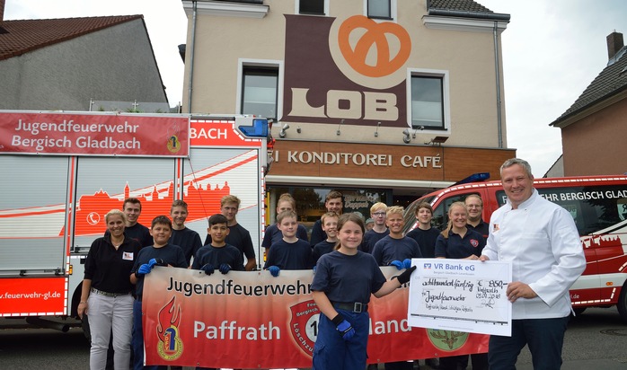 Im Rahmen des gestrigen Übungsdienstes der Jugendfeuerwehr überraschte der Bäckermeister die Jugendfeuerwehr mit einem großen Spendenscheck über 850 Euro. "Mich begeistert die sinnvolle Jugendarbeit der Feuerwehr und meine Kunden sehen das offensichtlich auch so. Die Tippbereitschaft zu Gunsten der Jugendfeuerwehr war in meinen Filialen enorm" so Peter Lob.