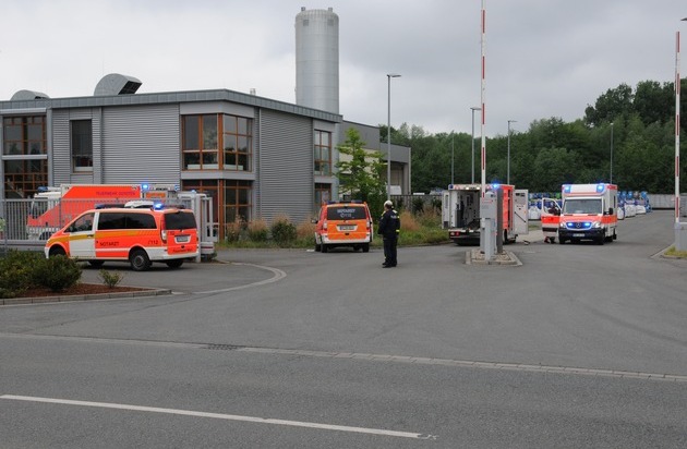 Zu einem schweren Arbeitsunfall sind heute gegen 16:15 Uhr die Kräfte von Feuerwehr und Rettungsdienst in das "Gewerbegebiet Ost" alarmiert worden. Während eines Arbeitsvorganges, kam es in einem Recyclingbetrieb für Altbatterien vermutlich zu einer heftigen chemischen Reaktion, in dessen Verlauf insgesamt vier Menschen verletzt worden sind. Ein Mitarbeiter zog sich dabei lebensgefährliche Verletzungen zu und musste, nach einer medizinischen Versorgung durch den Rettungsdienst, mit einem Rettungshubschrauber dem Universitätsklinikum Essen zugeführt werden. Ein Patient wurde mit schweren Verletzungen mit einem Rettungswagen ebenfalls in die Uniklinik Essen eingeliefert, zwei weitere, mit leichten Verletzungen, sind in ein Krankenhaus nach Recklinghausen transportiert worden. Durch die Reaktion kam es zu einem Brand, der allerdings noch während der Entstehung schnell und erfolgreich bekämpft werden konnte. Da sich der Unfall in einem gesicherten Bereich des Betriebes ereignete, bestand für Menschen und die Umwelt keine Gefahr. Um jedoch eine Kontamination mit Quecksilber auf dem Betriebsgelände auszuschließen und einer Kontaminationsverschleppung vorzubeugen, sind Kräfte des ABC-Zuges der Feuerwehr Dorsten derzeit (Stand: 21:00 Uhr) damit beschäftigt, den kompletten Bereich auf den eventuell vorhandenen Schadstoff zu kontrollieren. Die eingesetzten Rettungsmittel sind nach dem Einsatz prophylaktisch dekontaminiert worden. Die Einsatzkräfte aus Dorsten werden dabei von Spezialkräften der Feuerwehren Köln und Dortmund vor Ort tatkräftig unterstützt. Die Unfallursache ist bisher unklar, die Polizei und das Amt für Arbeitsschutz ermitteln. Die Feuerwehr war zeitweise mit ca. 50 Einsatzkräften vor Ort.(MT)