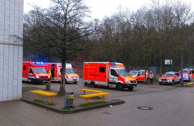 Heute Morgen um 10:27 Uhr wurde die Feuerwehr Erkrath und der Rettungsdienst zur Realschule an der Rankestraße alarmiert. Dort sollten über 20 Schüler aufgrund einer Reizstofffreisetzung betroffen sein und die damit verbundenen typischen Symptome aufweisen.