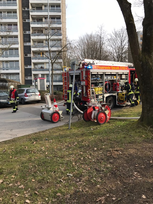 Am Mittag alarmierten Bewohner eines Hochhauses auf der Willbecker Straße die Feuerwehr, da sie aus einer Wohnung im Erdgeschoss einen piependen Heimrauchmelder hörten. Die Einsatzkräfte konnten durch ein Fenster der Wohnung eine Rauchentwicklung feststellen. Da nicht auszuschließen war, ob sich noch Personen in der Wohnung befinden könnten, wurde die Wohnungstüre gewaltsam geöffnet. Damit sich der Brandrauch nicht im Treppenhaus ausbreiten konnte wurde vorher ein mobiler Rauchverschluss gesetzt. Dieser ermöglicht bei einem Brand in einem Gebäude die Zugangstür zu öffnen und verhindert bzw. reduziert hierbei die Ausbreitung von heißem und giftigem Brandrauch in noch unverrauchte Bereiche. In Verbindung mit einer gleichzeitigen Überdruckbelüftung konnte somit das Treppenhaus rauchfrei gehalten werden. Personen wurden in der Wohnung nicht vorgefunden und der vorgehende Atemschutztrupp fand auf dem eingeschalteten Herd in der Küche verbranntes Kochgut vor und nahm dieses von der heißen Herdplatte. Die Einsatzmaßnahmen der Feuerwehr beschränkten sich daher lediglich auf das Ausschalten des Herdes sowie eine Belüftung der Wohnung. Somit konnte durch den installierten Rauchmelder ein größerer Schaden verhindert werden. Im Einsatz waren die hauptamtliche Wache sowie die Löschzüge Alt-Erkrath, Millrath und Trills.