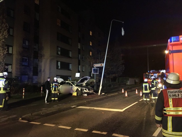 Um 23:57 Uhr wurde eine Löschgruppe des Löschzuges Alt-Erkrath sowie die hauptamtliche Wache und der Rettungsdienst zu einem schweren Verkehrsunfall mit einer eingeklemmten Person auf die Düsseldorfer Straße in Höhe des Rosenhofes alarmiert. Dort war ein Taxi frontal gegen eine Straßenlaterne geprallt. Entgegen der ersten Meldung war der schwerverletzte Taxifahrer glücklicherweise nicht in seinem Fahrzeug eingeklemmt und war bereits von Ersthelfern befreit worden. Die Feuerwehr musste lediglich Sicherungsmaßnahmen durchführen und die beschädigte Straßenlaterne demontieren. Der schwerverletzte Taxifahrer wurde unter Notarztbegleitung mit einem Rettungswagen in die Uniklinik Düsseldorf transportiert. Für einen Ersthelfer musste im Laufe des Einsatzes ein Notfallseelsorger angefordert werden. Der Einsatz der Feuerwehr war gegen 02:15 Uhr beendet.