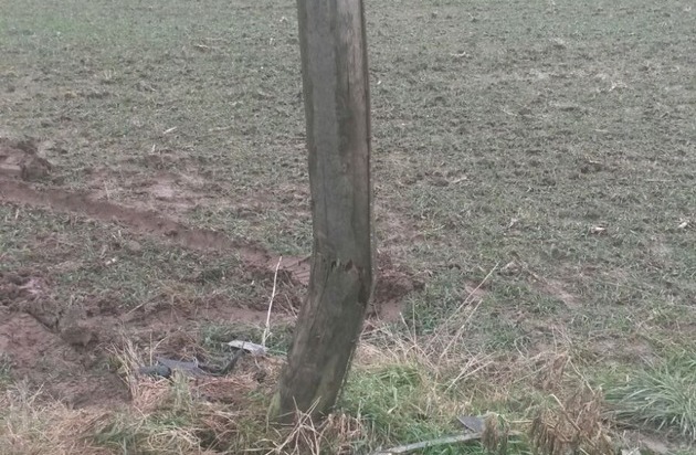 Zu dem Verkehrsunfall kam es, nachdem der Fahrzeugführer auf der Straße Schlenk die Kontrolle über seinen PKW verlor, nach links von der Straße abkam und dabei mit einem Telefonmast kollidierte. Die Wucht des Aufpralls war so groß, dass der Mast dabei in etwa 80 cm Höhe über dem Erdboden abbrach und drohte umzustürzen.