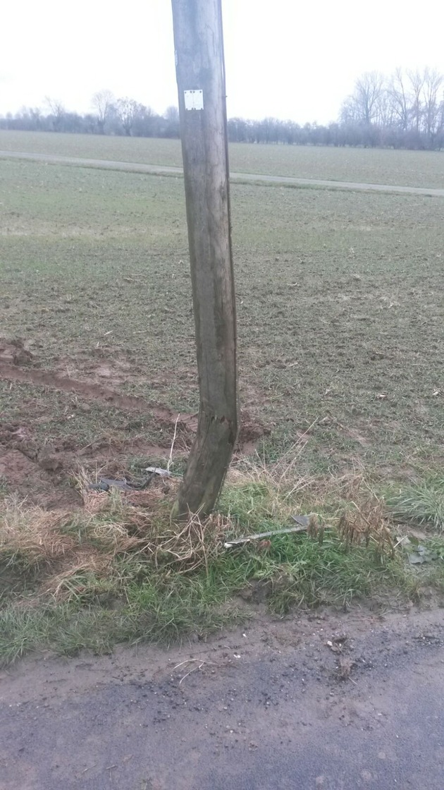 Zu dem Verkehrsunfall kam es, nachdem der Fahrzeugführer auf der Straße Schlenk die Kontrolle über seinen PKW verlor, nach links von der Straße abkam und dabei mit einem Telefonmast kollidierte. Die Wucht des Aufpralls war so groß, dass der Mast dabei in etwa 80 cm Höhe über dem Erdboden abbrach und drohte umzustürzen.