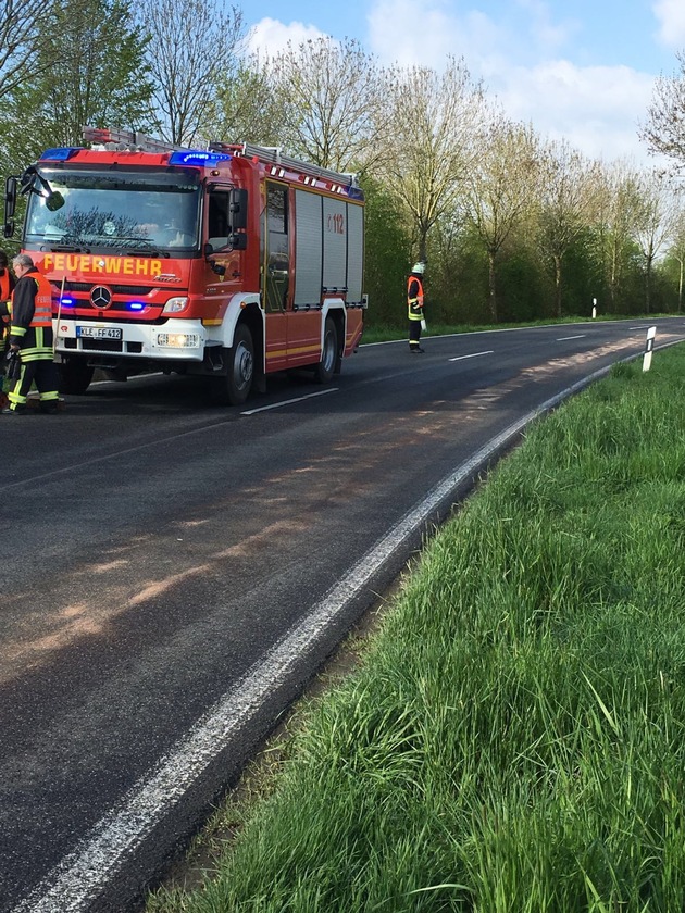 FW-KLE: Kilometerlange Ölspur führt zu Feuerwehreinsatz.