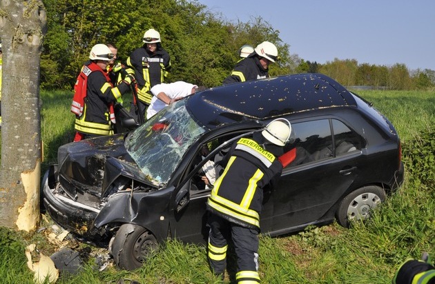Zu einem schweren Verkehrsunfall kam es am heutigen Sonntag (01.05.2016) auf der Uedemer Straße in Bedburg-Hau/ Schneppenbaum. Dabei wurde eine 29jährige Bedburg-Hauerin in ihrem Fahrzeug eingeklemmt. Sie musste von der Feuerwehr befreit werden. Vorbildlich handelten Ersthelfer.