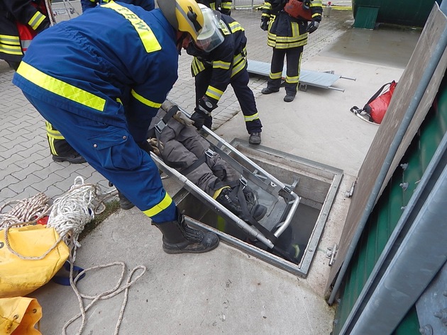 Die Freiwillige Feuerwehr Bedburg-Hau und das Technische Hilfswerk (THW) aus Kleve probten den Ernstfall: Eine Staubexplosion in einem Hochsilo. Über 30 Einsatzkräfte waren im Einsatz.