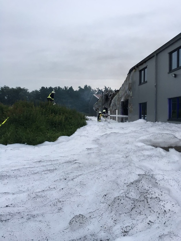 FW-KLE: Drittmeldung: Brand eines kunststoffverarbeitenden Betriebs im Gewerbegebiet Bedburg-Hau