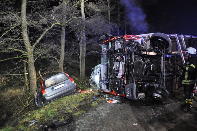 FW-KLE: Verkehrsunfall mit LKW: PKW-Fahrerin verstirbt an der Unfallstelle