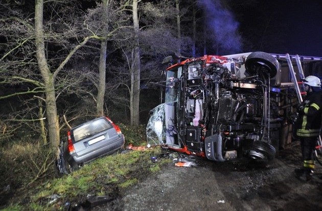 FW-KLE: Verkehrsunfall mit LKW: PKW-Fahrerin verstirbt an der Unfallstelle