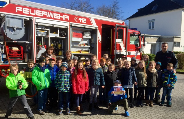 Feuer! Was tun? Mit der Klasse 3c der Gemeinschaftsgrundschule St. Markus - Teilstandort Hasselt - wurde ein erfolgreicher Projekttag "Feuerwehr" mit Brandschutzerziehung umgesetzt.