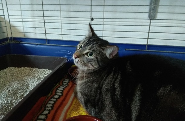 Erlittene Risswunden wurden tierärztlich versorgt. Die Katze erholt sich jetzt in der Praxis von den Verletzungen. Ein Besitzer ist nicht bekannt. Die Katze ist weder gechipt noch tätowiert.