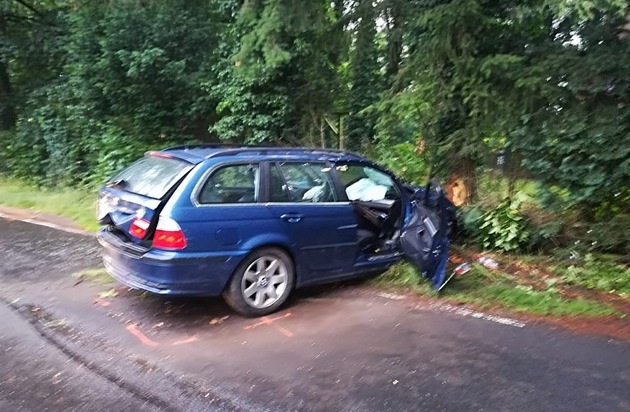 Zu einem Verkehrsunfall kam es heute (01.06.2018) gegen 20:10 Uhr auf der Mühlenstraße in einer Kurve vor einem ehemaligen Landgasthof. Die Fahrerin hatte die Kontrolle über ihren BMW verloren und war frontal in einen Baum geprallt. Bei dem Aufprall wurden die Fahrerin und Beifahrerin verletzt.