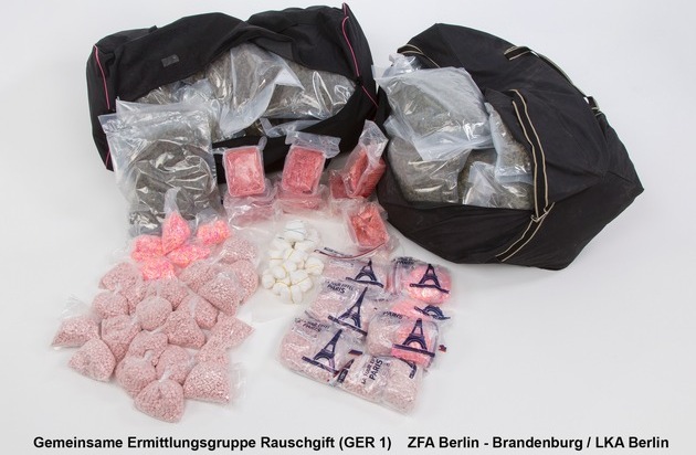 Am Mittwoch konnte die Gemeinsame Ermittlungsgruppe Rauschgift (Zollfahndungsamt Berlin-Brandenburg / LKA Berlin) mit Hilfe von Spezialkräften der Berliner Polizei insgesamt 3 Tatverdächtige beim Betreten einer Rauschgiftbunkerwohnung in Berlin-Neukölln auf frischer Tat festnehmen. Das zuvor aus den Niederlanden eingeschmuggelte Rauschgift war für den gewinnbringenden Weiterverkauf im Stadtgebiet von Berlin bestimmt. Es wurden insgesamt ca. 37.500 Stück Ecstasy Tabletten (knapp 17 kg), 45 Kg Marihuana, 7,2 Kg Amphetamin, 1 Kg Kokain sowie mehrere tausend Euro Bargeld aufgefunden und sichergestellt. Der Straßenhandelswert der sichergestellten Drogen beläuft sich auf mindestens 800.000,00 Euro. Die drei Tatverdächtigen werden am 21. Juli 2016 dem Haftrichter vorgeführt. Seit Beginn des Jahres 2016 ermittelte die Gemeinsame Ermittlungsgruppe Rauschgift von Polizei und Zoll unter der Leitung der für die Bekämpfung der organisierten Rauschgiftkriminalität zuständigen Abteilung der Staatsanwaltschaft Berlin gegen die Drogenhändler. Am Mittwoch schlugen die Fahnder zu.