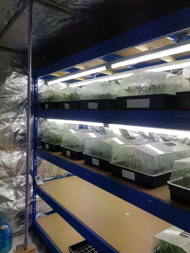 Nach dem erfolgreichen Zugriff nahm die Tatortgruppe des Landeskriminalamtes Thüringen zunächst die notwendige Beweissicherung und Tatortarbeit in der Plantage vor. Neben den im fortgeschrittenen Wachstumsstadium befindlichen 2.000 Cannabispflanzen befanden sich in der Plantage auch zahlreiche Anzuchtbehältnisse mit mehr als 300 Cannabis-Setzlingen sowie eine größere Menge Pflanzenreste, die auf eine bereits stattgefundene "Ernte" hindeuten.