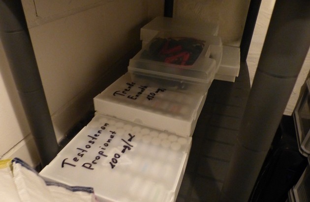 Dort allerdings fiel den Fahndern ein, mit einem teuren Sicherheitsschloss, besonders gesicherter Kellerraum ins Auge. Durch ein Guckloch konnten sie Boxen mit der Aufschrift Testosteron erkennen.