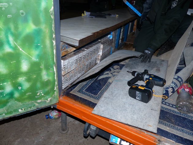 ZOLL-F: Zigarettenschmuggler mit 94.000 unversteuerten Zigaretten erwischt - Besonders hergerichtete doppelte Wände in einem Wohnmobil-Anhänger dienten als Versteck