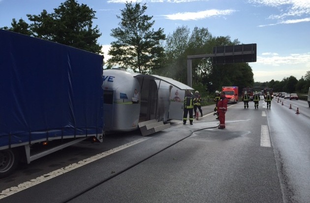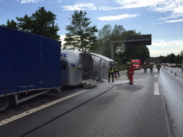 FW-GE: Wohnwagenanhänger brannte auf der A42